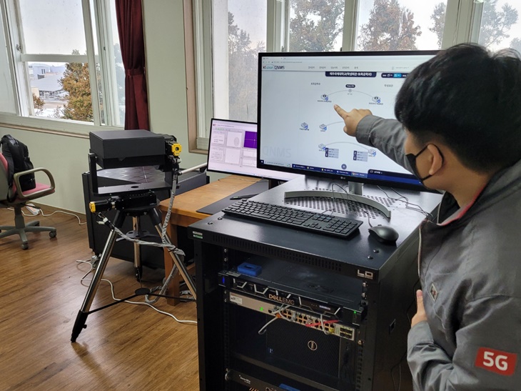 À̸¦ À§ÇØ KT´Â Á¦ÁÖ±¹Á¦´ë Çлýȸ°ü°ú Á¦7°øÇаü »çÀÌ 340m ±¸°£ÀÇ Á÷¼± °¡½Ã°Å¸®(LOS)¸¦ È®º¸Çß´Ù. Á¦ÁÖ±¹Á¦´ë Çлýȸ°ü¿¡´Â ¾çÀÚ¾ÏȣŰ ºÐ¹è(QKD) ÀåºñÀÇ ´ÜÀϱ¤ÀÚ ¼Û½ÅºÎ°¡ ÀÖ°í, 340m ¶³¾îÁø Á¦7°øÇаü¿¡´Â QKD ´ÜÀϱ¤ÀÚ ¼ö½ÅºÎ°¡ ÀÖ´Ù. ¸Ö¸® ¶³¾îÁø °¢°¢ÀÇ ¼Û¡¤¼ö½ÅºÎ¿¡ ºö Á¤¹ÐÁöÇâ ±â¼úÀ» Àû¿ëÇØ ¾çÃøÀÇ ±¤ÀÚ °æ·Î¸¦ Á¤·ÄÇØ ¼·Î ÀÏÄ¡µÈ Á¤º¸¸¸ ºÐ¸®ÇØ µ¿ÀÏÇÑ ¾çÀÚ¾Ïȣ۸¦ È®º¸ÇÏ°Ô µÈ´Ù. QKD Àåºñ°¡ ¼Û¡¤¼ö½ÅÀÚ °£ µ¿ÀÏÇÑ ¾çÀÚ¾Ïȣ۸¦ °¡Áö°Ô ÇÏ´Â ¿ªÇÒÀ» ÇÑ´Ù¸é ¹®¼ °øÀ¯ Ç÷§ÆûÀº ½ÇÁ¦ ¹®¼¸¦ ¾ÈÀüÇÏ°Ô ÁÖ°í ¹Þ´Â ¿ªÇÒÀ» ÇÑ´Ù.
