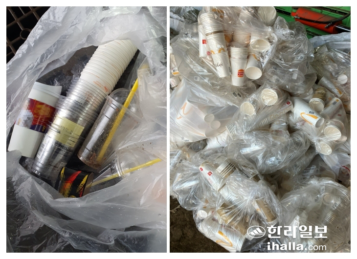 [ÇѶóÀϺ¸] Áö³ 10ÀÏ Á¦Áֽà ±¸ÁÂÀ¾¿¡ ÀÖ´Â Æó±â¹° 󸮾÷ü. â°í ÇÑÆí¿¡ '1ȸ¿ëÄÅ º¸°ü Àå¼Ò'¶ó°í ÀûÈù °ø°£¿¡´Â Á¾ÀÌ¿Í ÇÃ¶ó½ºÆ½ ÄÅÀ» °¡µæ ´ãÀº 10¿© °³ÀÇ Æ÷´ë ÀÚ·ç°¡ ½×¿© ÀÖ¾ú´Ù. Á¦ÁÖ¿¡¼ ÀÏȸ¿ëÄÅ º¸Áõ±ÝÁ¦(ÀÚ¿ø¼øÈ¯º¸Áõ±ÝÁ¦)°¡ ½ÃÇàµÈ Áö³ÇØ 12¿ù 2ÀϺÎÅÍ ¼ö°ÅµÅ µé¾î¿Â ¾çÀÌ´Ù. °¢ ¸ÅÀå¿¡¼ ȸ¼öÇÑ ÀÏȸ¿ëÄÅÀº Á¦ÁÖ½Ã¿Í ¼±ÍÆ÷½Ã ¼ö°Å ¾÷ü 2°÷À» ÅëÇØ À̰÷À¸·Î ¸ðÀ̰í ÀÖ´Ù.