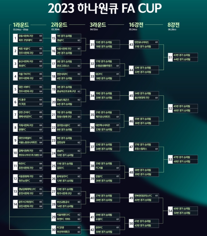 FA CUP 58 Ѵ. K 1 12, K 2 13, K3 15, K4 10, K5 8 ̸ 1 4(6) , (7) Ȩص ȴ.