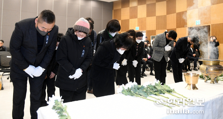 | 28ÀÏ Á¦ÁÖ4¡¤3Æòȱ³À°¼¾ÅÍ¿¡¼ ¿¸° '4¡¤3Èñ»ýÀÚ À¯ÇØ ½Å¿øÈ®ÀÎ º¸°íȸ'. À̻󱹱âÀÚ |