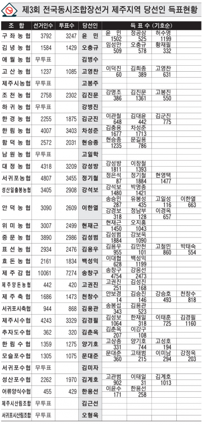 [Á¶ÇÕÀå¼±°Å] Á¦3ȸ Àü±¹µ¿½ÃÁ¶ÇÕÀå¼±°Å Á¦ÁÖÁö¿ª µæÇ¥ÇöȲ