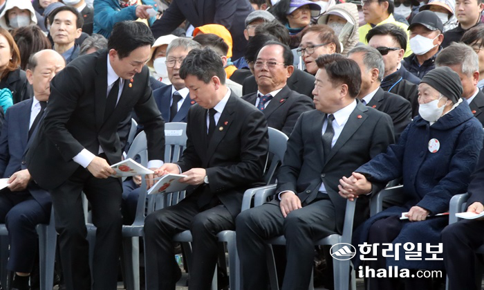 [ÇѶóÀϺ¸] Á¦75ÁÖ³â Á¦ÁÖ4¡¤3 Èñ»ýÀÚ Ãß³ä½ÄÀÌ 3ÀÏ ¿ÀÀü Á¦ÁÖ4¡¤3ÆòȰø¿ø¿¡¼ ÇÑ´ö¼ö ±¹¹«ÃѸ®, ¿øÈñ·æ ±¹Åä±³ÅëºÎ Àå°ü, ÀÌÀç¸í ´õºÒ¾î¹ÎÁÖ´ç ´ëÇ¥ µî À¯Á·°ú µµ¹Î, °¢°è ÀÎ»ç µîÀÌ Âü¼®ÇÑ °¡¿îµ¥ ºÀÇàµÆ´Ù.
