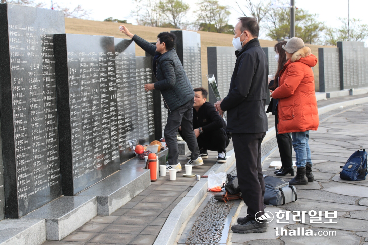 Á¦ÁÖ4¡¤3ÆòȰø¿ø ³» À§·Éž°ú Çà¹æºÒ¸íÀΠǥ¼®, °¢¸íºñ¿¡µµ °¢±â »ç¿¬À» Áö´Ñ Èñ»ýÀÚ À¯Á·°ú »ýÁ¸ÀÚµéÀÌ °¡Á·ÀÇ À̸§À» ¾î·ç¸¸Áö¸ç Á¦¸¦ ¿Ã·È´Ù. ƯÈ÷ Äڷγª19 »çȸÀû °Å¸®µÎ±â°¡ ÇØÁ¦µÊ¿¡ µû¶ó Ç¥¼®¿¡ ±Ö°ú °úÀÚ, ¹°, ¸·°É¸® µîÀ» µÎ°í Á¦¸¦ ¿Ã¸®±âµµ Çß´Ù.