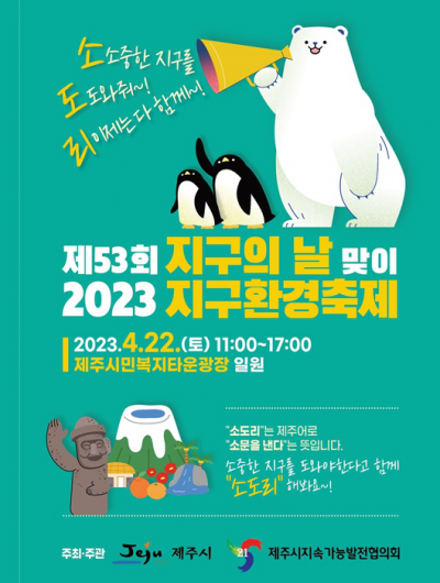 [ÇѶóÀϺ¸] 4¿ù 22ÀÏÀº 53ȸ°¸¦ ¸Â´Â Áö±¸ÀÇ ³¯. Á¦Áֽô À̳¯ ¿ÀÀü 11½ÃºÎÅÍ ¿ÀÈÄ 5½Ã±îÁö Á¦Áֽùκ¹ÁöŸ¿î ±¤Àå¿¡¼ '2023 Áö±¸È¯°æÃàÁ¦'¸¦ ¿°í Áö±¸ÀÇ ³¯ Àǹ̸¦ ½Ã¹Îµé°ú ³ª´«´Ù.