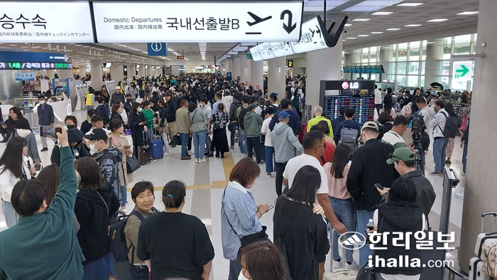 ÀÌ·ÎÀÎÇØ Á¦ÁÖ°øÇ× Ãâ¹ß´ëÇÕ½ÇÀº ´ëü Ç×°øÆíÀ» ±¸ÇÏ·Á´Â ¿©Çà°´µé·Î Å©°Ô ºÕºñ¸é¼ Å« È¥ÀâÀ» ºú°í ÀÖ´Ù.