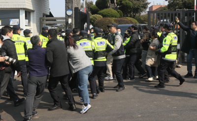 °¢°¢ Àü±¹¿©¼º³ó¹ÎȸÃÑ¿¬ÇÕ Á¦ÁÖµµ¿¬ÇÕ(ÀÌÇÏ Àü¿©³ó Á¦ÁÖ)°ú °ø¾Èź¾ÐÀúÁö ¹× ¹ÎÁÖ¼öÈ£ Á¦ÁÖ´ëÃ¥À§¿øÈ¸(ÀÌÇÏ ´ëÃ¥À§) ¼Ò¼ÓÀÎ A¾¾ µî 2¸íÀº Áö³´Þ 4ÀÏ ¿ÀÈÄ Á¦ÁÖ±³µµ¼Ò ¾Õ¿¡¼ ±âÀÚȸ°ßÀ» ¸¶Ä£ µÚ ±³µµ¼Ò¿¡¼ ³ª¿À´Â È£¼Û Â÷·®À» ¸·¾Æ¼´Â °úÁ¤¿¡¼ À̸¦ Á¦ÁöÇÏ´Â °æÂû°üÀ» ¹ÐÄ¡°Å³ª ¹® ÇøÀǸ¦ ¹Þ´Â´Ù.