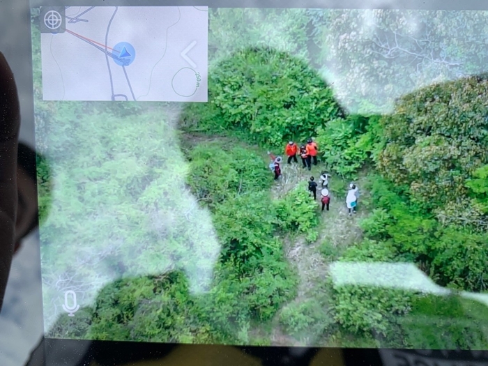 ÇöÀå¿¡ ¸ÕÀú µµÂøÇÑ ÀÚÄ¡°æÂû µ¿ºÎÇູ¼¾ÅÍ´Â °ð¹Ù·Î µå·ÐÀ» ¶ç¿ö ½Å°íÀÚ¿¡°Ô "³ª¹«°¡ ¾ø´Â µéÆÇÀ¸·Î ³ª¿Í ´Þ¶ó", "µå·ÐÀÌ º¸À̸é À̾߱âÇØ ´Þ¶ó"°í ¾È³»ÇÏ¸ç ¼ö»öÇÏ´ø Áß 15ºÐ Á¤µµ ÈÄ ½Å°íÀÚÀÇ ÁÂÇ¥¸¦ È®ÀÎÇϰí Áö¸®Á¤º¸½Ã½ºÅÛ(GPS)À¸·Î ÃßÀûÇØ ½Å°íÀÚ¸¦ ½Å¼ÓÇÏ°Ô ±¸Á¶Çß´Ù.