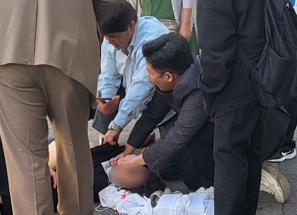 ¹ö½ºÁ¤·ùÀå¿¡¼ °©Àڱ⠾²·¯Áø 60´ë ¿©¼ºÀÌ ±ÝÀ¶±â°ü Á÷¿øµéÀÇ ½Å¼ÓÇÑ ÀÀ±ÞÁ¶Ä¡ ´öºÐ¿¡ ¸ñ¼ûÀ» ±¸Çß´Ù.