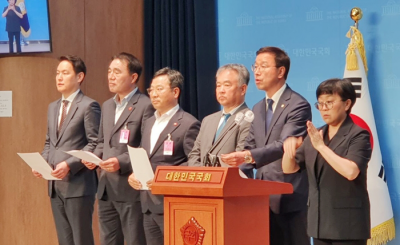 ´õºÒ¾î¹ÎÁÖ´ç À§¼º°ï¡¤¼ÛÀçÈ£¡¤±èÇÑ±Ô ±¹È¸ÀÇ¿ø µîÀº 3ÀÏ ±¹È¸ ¼ÒÅë°ü¿¡¼ ±âÀÚȸ°ßÀ» ¿°í Àç¿Üµ¿Æ÷û Á¦ÁÖ ¼³¸³À» Ã˱¸Çß´Ù. ºÎ¹ÌÇö ±âÀÚ