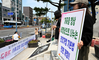 | 14ÀÏ Á¦ÁÖ½Ãû Á¶Çü¹° ¾Õ¿¡¼ Ä·ÆäÀÎÀ» ÁøÇàÇÏ´Â Á¦ÁÖÇѺθðȸ ÇØ¹Ð. À̵éÀº ¾çÀ°ºñ ´ëÁö±ÞÁ¦ ½Ç½Ã µîÀ» ¿ä±¸Çß´Ù. °Èñ¸¸±âÀÚ |