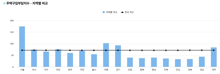 3ÀÏ Çѱ¹ÁÖÅñÝÀ¶°ø»ç ÁÖÅñÝÀ¶¿¬±¸¿ø¿¡ µû¸£¸é ¿ÃÇØ 1ºÐ±â µµ³» ÁÖÅñ¸ÀԺδãÁö¼öÀ¸·Î 85.0À¸·Î ÀüºÐ±â ´ëºñ 6.3Æ÷ÀÎÆ®(p) ¶³¾îÁ³´Ù. 2004³â °ü·Ã Åë°è ÀÛ¼ºÀÌ ½ÃÀÛµÈ ÀÌÈÄ °¡Àå ³ô¾Ò´ø ÀÛ³â 3ºÐ±â(90.9)¿Í 4ºÐ±â(90.7) ´ëºñ ÁÖÅô㺸´ëÃ⠱ݸ® Ç϶ô ¿µÇâÀ¸·Î ¼ÒÆø ¶³¾îÁ³Áö¸¸ ¿©ÀüÈ÷ Àü±¹ Æò±ÕÁö¼ö(71.9)¸¦ »óȸÇÏ¸ç ³ôÀº ¼öÁØÀ» À¯ÁöÇß´Ù. Àü±¹ Áö¼ö´Â ÀüºÐ±â ´ëºñ 11.7p ¶³¾îÁ³´Ù. 1ºÐ±â ÁÖÅñ¸ÀԺδãÁö¼ö°¡ °¡Àå ³ôÀº °÷Àº ¼¿ï(175.5)ÀÌ°í ¼¼Á¾(102.7), °æ±â(94.0)¿¡ À̾î Á¦ÁÖ°¡ ³×¹øÂ°·Î ³ô¾Ò´Ù.