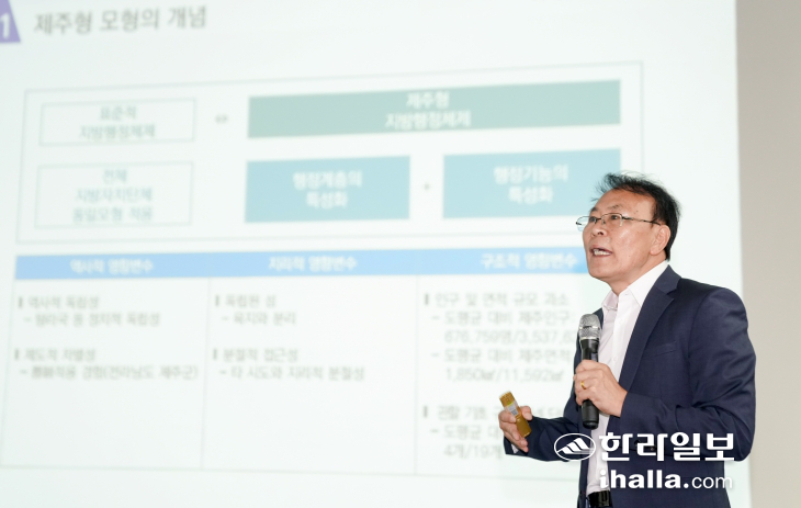 À̳¯ ¿ë¿ªÁøÀÎ (»ç)Çѱ¹Áö¹æÀÚÄ¡ÇÐȸ´Â 'Á¦ÁÖÇü ÇàÁ¤Ã¼Á¦ ¸ðÇü°³¹ß'¾ÈÀ» ¹ßÇ¥Çß´Ù. À̰¡¿îµ¥ Á¦ÁÖÇü ÇàÁ¤Ã¼Á¦ °³Æí´ë¾È¿¡ ´ëÇÑ ¿ä¼Ò °ËÅä¿Í Àü¹®°¡ Àǰ߼ö·ÅÀ» Á¾ÇÕÇØ ÀûÇÕ ´ë¾ÈÀ» µµÃâÇß´Ù.