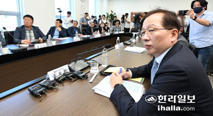 È«¼®Èñ Á¦ÁÖµµ¾î¼±ÁÖÇùȸ ȸÀåÀº "¹æ·ù´Â ±âº»ÀûÀ¸·Î ¹Ý´ëÇÏÁö¸¸, ºÒ°¡ÇÇÇÏ´Ù¸é ÃÖ¼ÒÇÑ ¾î¹ÎµéÀÌ ¸Ô°í»ì ¼ö ÀÖ´Â Áö¿ø Á¾ÇÕ´ëÃ¥ÀÌ ¸¶·ÃµÅ¾ß ÇÑ´Ù"¸ç "´ëÃ¥°ú °ü·ÃÇØ ¿©·¯ À̾߱Ⱑ ³ª¿Ô´Âµ¥, ÈíÁ·ÇÏÁö´Â ¾ÊÁö¸¸ Á¤ºÎ°¡ ¾î¶² »ý°¢À» °®°í ÀÖ´ÂÁö È®ÀÎÇß´Ù. ¿ì¸®(»çÁ¤)À» Çì¾Æ·ÁÁÙ ¼ö ÀÖ´Ù´Â °ÍÀÌ Áß¿äÇÏ´Ù"°í °Á¶Çß´Ù.