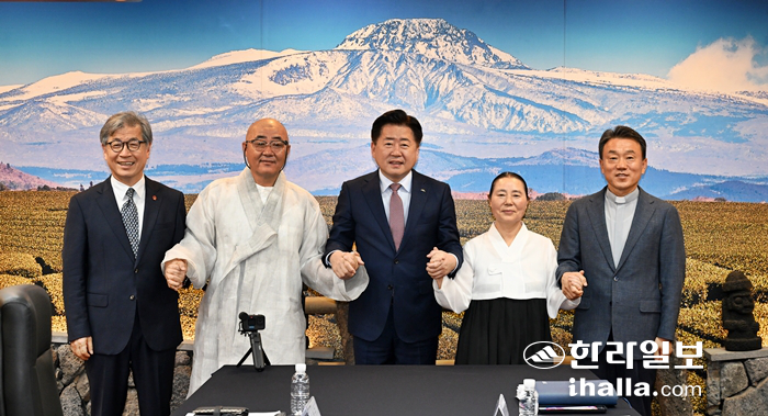 À̳¯ Á¦ÁÖÁ¾±³ÁöµµÀÚÇùÀÇȸ¿¡´Â °Çü¹Î ½ÅºÎ(õÁÖ±³), ±èÁö¿¬ ±³¹«(¿øºÒ±³), ÀÌ»ó±¸ ¸ñ»ç(±âµ¶±³), ¼ºÃµ½º´Ô(ºÒ±³), Á¶Àº¼º »ç¹«±¹ÀåÀÌ Âü¼®Çß´Ù.