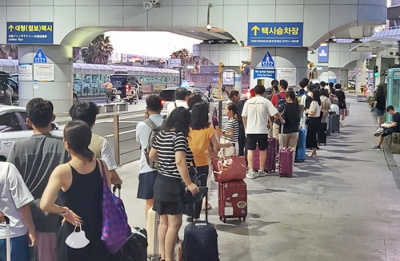 2ÀÏ Àú³á Á¦ÁÖ°øÇ×ÀÇ Åýà ½ÂÂ÷´ë ´ë±â ½Â°´Àº ¾î¸²Àâ¾Æ 150¸íÀÌ ³Ñ¾ú´Ù. ÇÏÁö¸¸ ÁøÀÔÇÏ´Â Åýô °¡¹³ÀÇ Äá ³ªµí ÇØ ´ë±â ÁÙÀÌ 100m ÀÌ»óÀ¸·Î ž½ÂÇϴµ¥¸¸ ÃÖ¼Ò 30~40ºÐ ÀÌ»ó ±â´Ù·Á¾ß ÇÏ´Â »óȲÀ̾ú´Ù. ÀϺΠÅýô ¿¹¾à°í°´À» À§ÇØ Á¦ÁÖ°øÇ× ÀÔ±¸¿¡¼ ´ë±âÇÏ¸ç ½ÂÂ÷´ë·Î ÁøÀÔÇÏÁö ¾Ê´Â ±âÇö»ó±îÁö ¹ú¾îÁö°í ÀÖ´Ù.