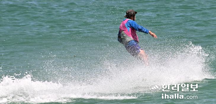 3ÀÏ Á¦Áֽà Á¶ÃµÀ¾ ÇÔ´öÇØ¼ö¿åÀå¿¡¼ ÇÑ ¼ÆÛ°¡ Àüµ¿¼ÇÎÀ» ÀÌ¿ëÇØ ½Ã¿øÇÑ ¹Ù´å¹Ù¶÷À» ¸ÂÀ¸¸ç ¹«´õÀ§¸¦ ½ÄÈ÷°í ÀÖ´Ù. °Èñ¸¸±âÀÚ