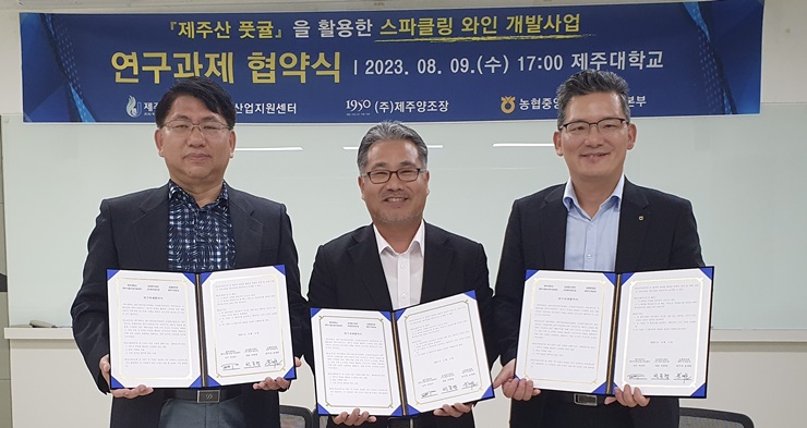 Á¦ÁÖ´ëÇб³ Á¦ÁÖ½Äǰ»ê¾÷Áö¿ø¼¾ÅÍ, ³ó¾÷ȸ»ç¹ýÀÎ(ÁÖ) Á¦ÁÖ¾çÁ¶Àå, ³óÇùÁ¦ÁÖº»ºÎ´Â 9ÀÏ Á¦ÁÖ´ëÇб³¿¡¼ Á¦ÁÖ»ê Dz±ÖÀ» Ȱ¿ëÇÑ ½ºÆÄŬ¸µ ¿ÍÀÎ °³¹ß»ç¾÷ ¿¬±¸°úÁ¦ Çù¾à½ÄÀ» ¿¾ú´Ù. ³óÇùÁ¦ÁÖº»ºÎ Á¦°ø
