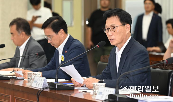 [ÇѶóÀϺ¸] ³»³âµµ Á¦ÁÖ °ü·Ã ±¹ºñ ¿¹»ê¾ÈÀÌ ´ë±Ô¸ð »è°¨µÈ °¡¿îµ¥ Á¦ÁÖÆ¯º°ÀÚÄ¡µµ°¡ ¹Î»ý Çö¾È ÇØ°áÀ» À§ÇØ ±¹ºñ È®º¸¿Í ¹ý °³Á¤ µî¿¡ ´õºÒ¾î¹ÎÁÖ´ç Â÷¿øÀÇ Àû±ØÀûÀÎ Áö¿ø°ú Çù·ÂÀ» ¿äûÇß´Ù.