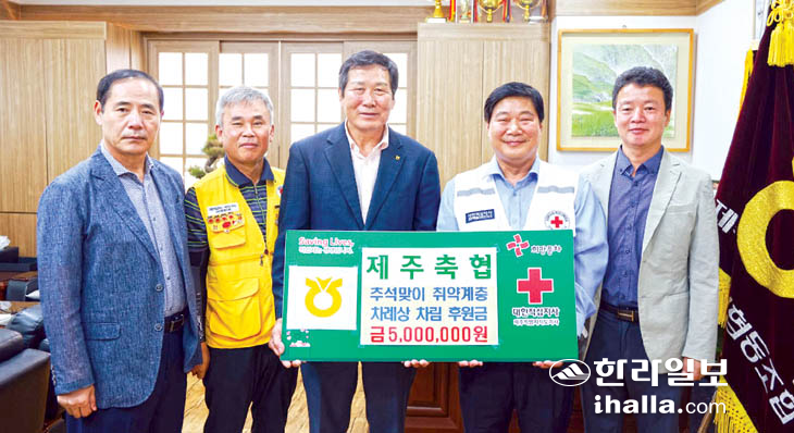 Á¦ÁÖÃà»ê³óÇù(Á¶ÇÕÀå õâ¼ö)Àº Áö³ 7ÀÏ Á¦ÁÖÃàÇù Á¶ÇÕÀå½Ç¿¡¼ ´ëÇÑÀû½ÊÀÚ»çÁ¦ÁÖÆ¯º°ÀÚÄ¡µµÁö»ç(ȸÀå Á¤Å±Ù)¿¡ Ãß¼®¸ÂÀÌ Ãë¾à°èÃþ Â÷·Ê»ó À庸±â ÈÄ¿ø±Ý 500¸¸¿øÀ» Àü´ÞÇß´Ù.