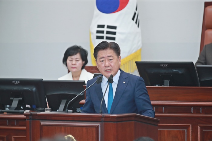 ¿À Áö»ç´Â 12ÀÏ ¿¸° Á¦420ȸ ÀÓ½Ãȸ Á¦3Â÷ º»È¸ÀÇ µµÁ¤Áú¹®¿¡¼ Á¦ÁÖÁö¿ª Ã౸ Ȱ¼ºÈ¿Í »ýȰÀα¸ À¯ÀÔÀ» À§ÇØ K4¸®±× Ã౸´Ü ½Å¼³À» Á¦¾ÈÇÑ ±¹¹ÎÀÇÈû À̳²±Ù ÀÇ¿ø(ºñ·Ê´ëÇ¥)ÀÇ ÁúÀÇ¿¡ "ÇâÈÄ ÇàÁ¤Ã¼Á¦ °³Æí ÀÌÈÄ ±âÃÊÁöÀÚü Â÷¿ø¿¡¼ °í·ÁÇØ º¼¸¸ÇÑ »çÇ×"À̶ó¸ç "´çÀå °í·ÁÇÏ±â ¾î·Æ´Ù"°í ¸»Çß´Ù.