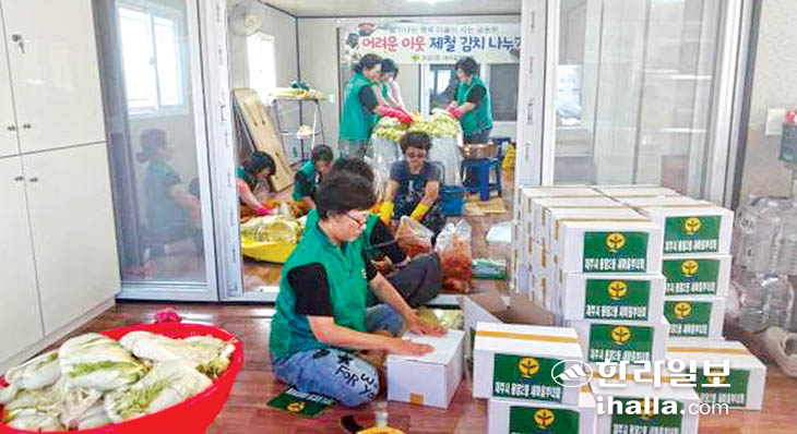 Á¦Áֽà ¿ë´ã2µ¿(µ¿Àå ȲÅÂÈÆ)°ú ¿ë´ã2µ¿»õ¸¶À»ºÎ³àȸ(ȸÀå À±¹Ì°æ)´Â Áö³ 9ÀÏ ºÎ³àȸ »ç¹«½Ç¿¡¼ ȸ¿ø 10¿©¸íÀÌ Âü¼®ÇÑ °¡¿îµ¥ Á¦Ã¶±èÄ¡¸¦ ¸¸µé¾î ¾î·Á¿î ÀÌ¿ô 40°¡±¸¿¡ Àü´ÞÇß´Ù.