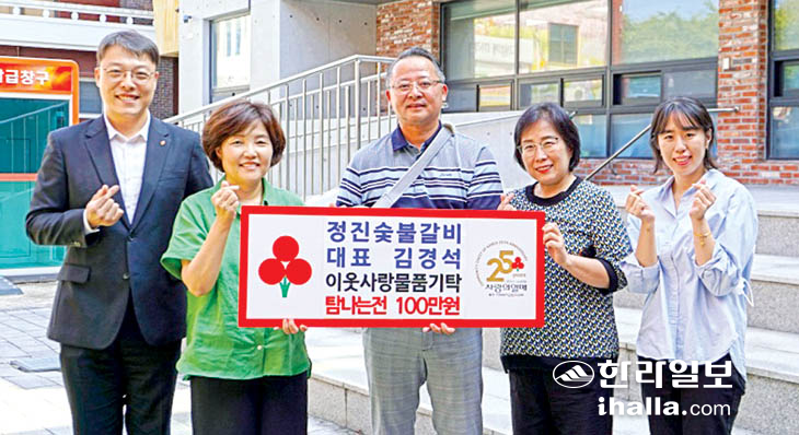 Á¤Áø½¡ºÒ°¥ºñ(´ëÇ¥ ±è°æ¼®)´Â Áö³ 11ÀÏ »ïµµ1µ¿Áֹμ¾Å͸¦ ¹æ¹®ÇØ 100¸¸¿ø »ó´çÀÇ Å½³ª´ÂÀüÀ» Á¦ÁÖ»çȸº¹Áö°øµ¿¸ð±Ýȸ(ȸÀå °Áö¾ð)¿¡ ±âŹÇß´Ù.