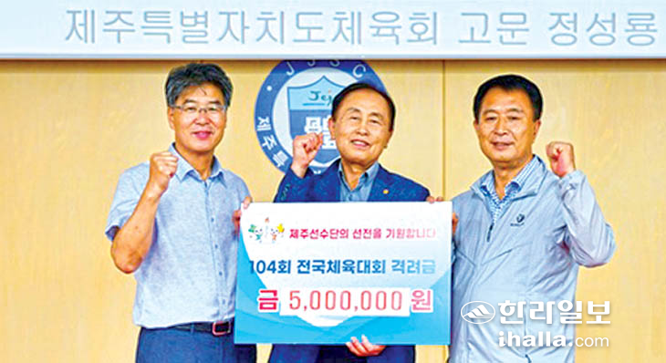 Á¦ÁÖÆ¯º°ÀÚÄ¡µµÃ¼À°È¸ Á¤¼º·æ °í¹®ÀÌ ÃÖ±Ù 10¿ù Àü³²¿¡¼ ¿¸®´Â Á¦104ȸ Àü±¹Ã¼À°´ëȸ¿¡ ÃâÀüÇÏ´Â Á¦ÁÖÆ¯º°ÀÚÄ¡µµ¼±¼ö´ÜÀÇ ¼±ÀüÀ» ´çºÎÇÏ¸ç °Ý·Á±Ý 500¸¸¿øÀ» Àü´ÞÇß´Ù.