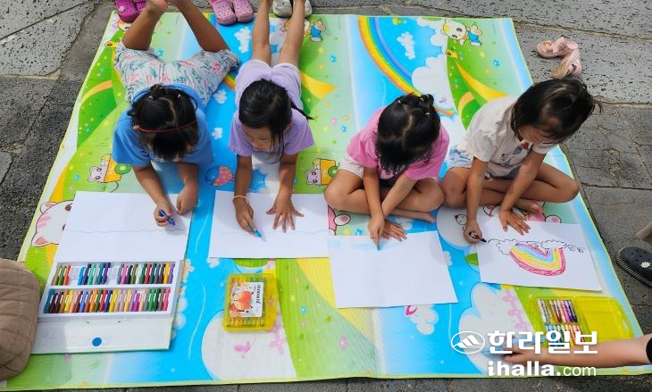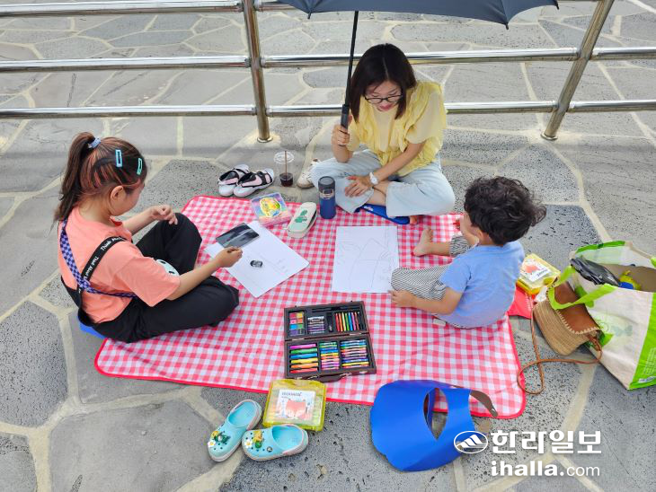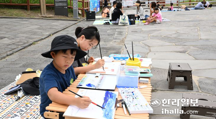 À̳¯ ´ëȸ¿¡ Âü¿©ÇÑ ¾ÆÀ̵éÀº ´«¿¡ ºñÄ£ »ç°è ¾Õ¹Ù´Ù¸¦ ºñ·Ô Á¦ÁÖ °÷°÷ÀÇ ¹Ù´Ù¿Í »ó»ó ¼Ó ¹Ù´ÙÀÇ ¸ð½À µî Àú¸¶´ÙÀÇ »ö±ò·Î Á¦ÁÖ ¹Ù´Ù¸¦ ±×·Á°¬´Ù. ÇÔ²² ¿Â ºÎ¸ðµéµµ À̳¯¸¸ÅÀº Á¶·ÂÀÚ°¡ ¾Æ´Ñ Á÷Á¢ ±×¸²À» ±×¸®¸ç µ¿½ÉÀ¸·Î µ¹¾Æ°£ ¸ð½ÀÀ̾ú´Ù.