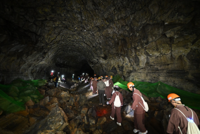 "¾îµÓ°í ¹«¼·Áö? ÀÌ°Ô ´Ù ¼±¹èµéÀÌ °É¾ú´ø ±æÀ̾ß. ¿©±â ¹Ù´Ú¿¡ ¹åÁÙ °°Àº ¸ð¾ç º¸ÀÌ´Ï? ÀÌ°Ç ¿ë¾ÏÀÇ Á¡¼ºÀÇ Â÷ÀÌ¿¡ ÀÇÇØ ¸¸µé¾îÁø °Å¾ß. ½Å±âÇÏÁö?" ÇÑ ÇØ¼³»ç´Â ¸¸Àå±¼ÀÇ ³»ºÎ¸¦ ·£ÅÏÀ¸·Î ºñÃç º¸¿©ÁÖ¸é¼ ¾ÆÀ̵鿡°Ô È»êÀ¸·Î ÀÎÇØ Çü¼ºµÈ ÁöÁú±¸Á¶¸¦ ¼³¸íÇØÁá´Ù.