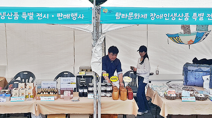 Á¦ÁÖÆ¯º°ÀÚÄ¡µµÀå¾ÖÀλý»êǰÆÇ¸Å½Ã¼³(¿øÀå ¾çâ¿À)Àº Áö³ 6~10ÀÏ ¿¸° Á¦62ȸ ޶ó¹®ÈÁ¦¿¡ Âü¿©ÇØ ÁßÁõÀå¾ÖÀλý»êǰÀ» È«º¸¡¤ÆÇ¸ÅÇϴ Ưº°Àü½Ã¡¤ÆÇ¸ÅÇà»ç¸¦ °¡Á³´Ù. À̹ø Çà»ç¿¡´Â µµ³» 10¿©°÷ÀÇ Àå¾ÖÀÎÁ÷¾÷ÀçȰ½Ã¼³¿¡¼ »ý»êÇÑ ¼Ò½ÃÁö, ¶±°¥ºñ µî 40¿©Á¾ÀÇ Á¦Ç°À» Àü½Ã ÆÇ¸ÅÇØ ÁßÁõÀå¾ÖÀÎ »ý»êǰÀÇ ¿ì¼ö¼º¡¤´Ù¾ç¼º È«º¸¸¦ ÅëÇÑ ÆÇ¸Å¸¦ È®´ëÇϰí, ÁßÁõÀå¾ÖÀλý»êǰ¿¡ ´ëÇÑ ÀÎ½Ä °³¼±¿¡ ³ª¼¹´Ù.