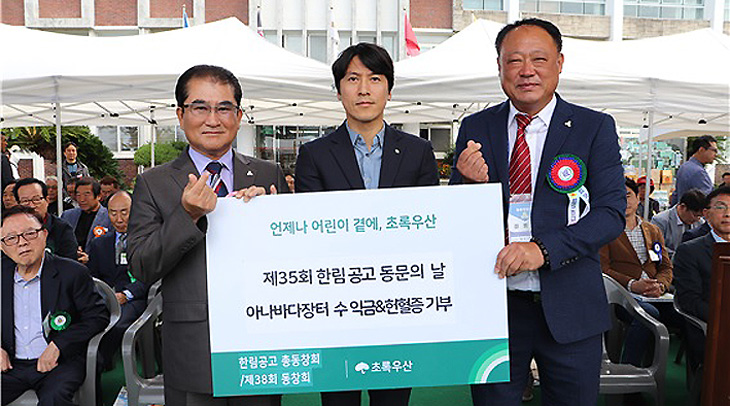 ÇѸ²°ø¾÷°íµîÇб³ Á¦38ȸ µ¿Ã¢È¸(ȸÀå °ÈïŹ)¿Í Ãѵ¿Ã¢È¸(ȸÀå °í°æ¸³)´Â Áö³ 8ÀÏ ÃÊ·Ï¿ì»ê Á¦ÁÖÁö¿ªº»ºÎ(º»ºÎÀå º¯Á¤±Ù)¿¡ ¾Æ³ª¹Ù´ÙÀåÅÍ ¼öÀÍ±Ý 160¸¸¿ø°ú ÇåÇ÷Áõ 74¸Å¸¦ ÈÄ¿øÇß´Ù.
