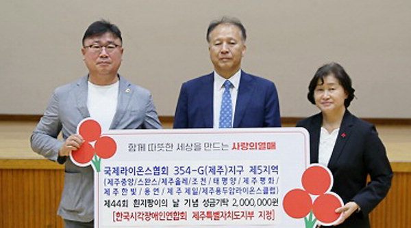 ±¹Á¦¶óÀ̿½ºÇùȸ 354-G(Á¦ÁÖ)Áö±¸(ÃÑÀç ¹Ú¿ë¼±) Á¦5Áö¿ª(À§¿øÀå ¾ç¼ºº¸)Àº Áö³ 19ÀÏ Á¶ÃµÃ¼À°°ü¿¡¼ ÁøÇàµÈ 'Á¦44ȸ ÈòÁöÆÎÀÌÀÇ ³¯ ±â³ä½Ä ¹× Á¦47ȸ ½Ã°¢Àå¾ÖÀÎÀÜÄ¡ÇѸ¶´ç'Çà»ç¸¦ ±â³äÇØ ¼º±Ý 200¸¸¿øÀ» Á¦ÁÖ»çȸº¹Áö°øµ¿¸ð±Ýȸ(ȸÀå °Áö¾ð)¿¡ ±âŹÇß´Ù.
