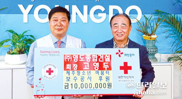 (ÁÖ)¿µµµÁ¾ÇհǼ³(ȸÀå °í¿µµÎ)Àº Áö³ 27ÀÏ ¿µµµÁ¾ÇհǼ³ »ç¹«½Ç¿¡¼ ´ëÇÑÀû½ÊÀÚ»çÁ¦ÁÖÆ¯º°ÀÚÄ¡µµÁö»ç¿¡ Á¦ÁÖû¼Ò³â ¸Ó¹³ÅÍ º¸¼ö°ø»ç Áö¿ø ÈÄ¿ø±Ý 1000¸¸¿øÀ» ±âŹÇß´Ù.