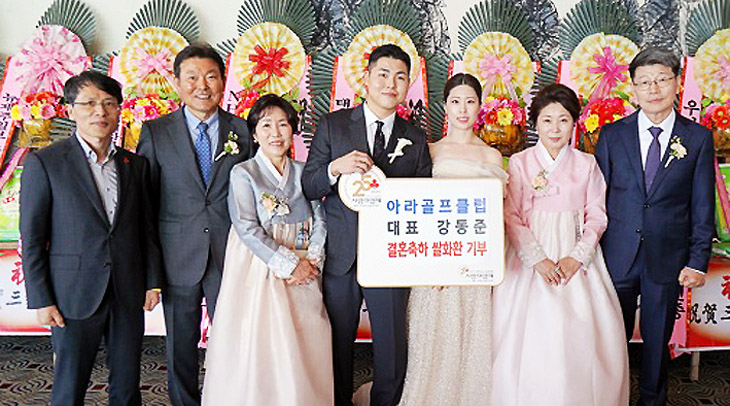 ¾Æ¶ó°ñÇÁŬ·´ °µ¿ÁØ ´ëÇ¥´Â Áö³ 29ÀÏ ¶ó¸¶´ÙÇÁ¶óÀÚ Á¦ÁÖÈ£ÅÚ¿¡¼ °áÈ¥½Ä ÃàÇÏÈȯÀ¸·Î ¹ÞÀº ½Ò 920§¸À» Á¦ÁÖ»çȸº¹Áö°øµ¿¸ð±Ýȸ(ȸÀå °Áö¾ð)¿¡ ±âŹÇß´Ù.