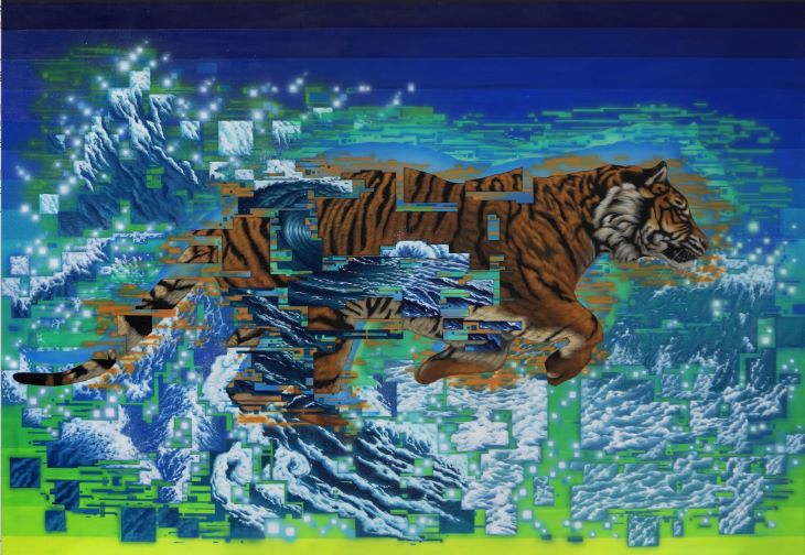 Á¤ÀçÈÆ ÀÛ 'ÆÄµµ, ÁÙ¹«´Ì, È£¶ûÀÌ'(112.1¡¿162.2§¯, Acrylic on canvas, 2023)