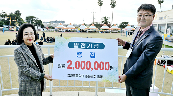 ¹ýȯÃѵ¿¹®È¸´Â À̳¯ ¸ð±³ ¹ßÀü±â±Ý 200¸¸¿øÀ» ±èÁø¾Ö ¹ýȯÃʵîÇб³ ±³Àå¿¡°Ô Àü´ÞÇß´Ù.