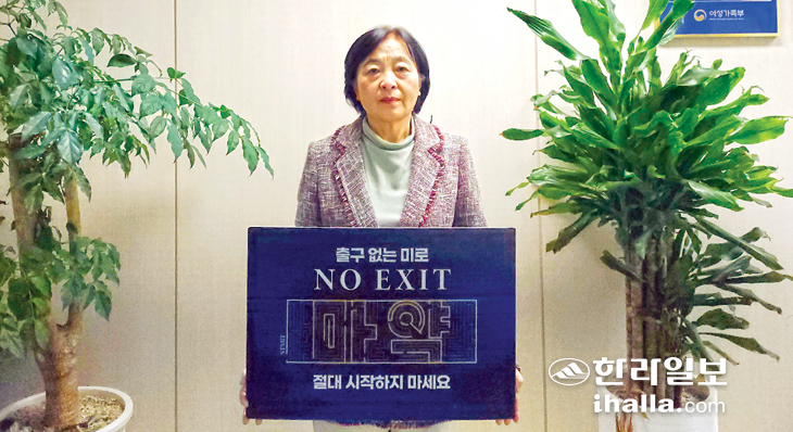 ¹®¼ø´ö Á¦ÁÖ¿©¼º°¡Á·¿¬±¸¿øÀåÀÌ 13ÀÏ ¸¶¾à¹üÁ˸¦ ¿¹¹æÇϰí, ¸¶¾à Áßµ¶ÀÇ À§Ç輺À» ¾Ë¸®±â À§ÇÑ'³ë ¿¢½ÃÆ®(NO EXIT)'¸±·¹ÀÌ Ä·ÆäÀο¡ µ¿ÂüÇß´Ù.