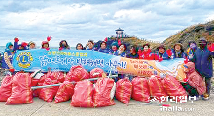 Á¦ÁÖµµ³» ¿©¼º °£È£»ç·Î ±¸¼ºµÈ ±¹Á¦¶óÀ̿½ºÅ¬·´354-GÁö±¸ ½º¿Ï½º¶óÀ̿½ºÅ¬·´(ȸÀå ¾ç½ÂÁÖ)Àº Áö³ 12ÀÏ Á¦Áֽà Á¶ÃµÀ¾ ´ß¸Ó¸£Çؾȿ¡¼ ȸ¿ø 20¿© ¸íÀÌ Âü¿©ÇØ ¹Ý·ÁÇØº¯ ȯ°æÁ¤ÈȰµ¿À» ½Ç½ÃÇß´Ù. À̳¯ ȸ¿øµéÀº ÇØ¾ç¾²·¹±â 135.5§¸°ú ´ëÇü½ºÆ¼·ÎÆû µîÀ» ¼ö°ÅÇϸç Á¦ÁÖ È¯°æ º¸È£¿¡ ±¸½½¶¡À» Èê·È´Ù.