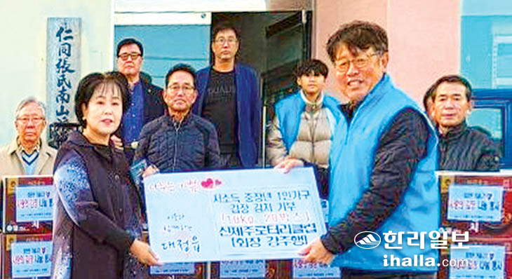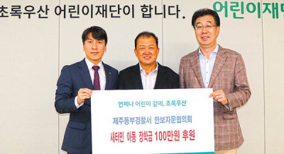 Á¦ÁÖµ¿ºÎ°æÂû¼ ¾Èº¸ÀÚ¹®ÇùÀÇȸ(ȸÀå ¹Ú¼ºÇÊ)´Â Áö³ 14ÀÏ ÃÊ·Ï¿ì»ê Á¦ÁÖÈÄ¿øÈ¸(ȸÀå Ȳ±Ý½Å)¿Í ÃÊ·Ï¿ì»ê Á¦ÁÖÁö¿ªº»ºÎ(º»ºÎÀå º¯Á¤±Ù)¿¡ »õÅ͹Π¾Æµ¿ ÀåÇÐ±Ý 100¸¸¿øÀ» Àü´ÞÇß´Ù.