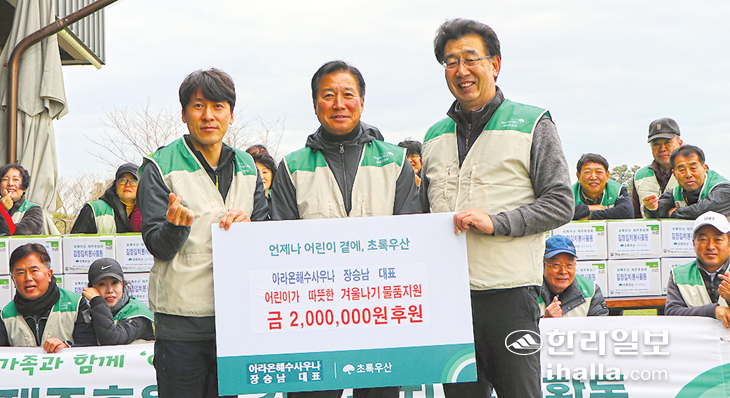 ¾Æ¶ó¿Â ÇØ¼ö»ç¿ì³ª(´ëÇ¥ Àå½Â³²)´Â ÃÖ±Ù ÁøÇàµÈ ÃÊ·Ï¿ì»ê Á¦ÁÖÈÄ¿øÈ¸ ±èÀå±èÄ¡ Çà»ç¿¡ Âü¿©ÇØ µû¶æÇÑ °Ü¿ï³ª±â ÈÄ¿ø±Ý 200¸¸¿øÀ» ÃÊ·Ï¿ì»ê Á¦ÁÖÁö¿ªº»ºÎ(º»ºÎÀå º¯Á¤±Ù)¿¡ Àü´ÞÇß´Ù.