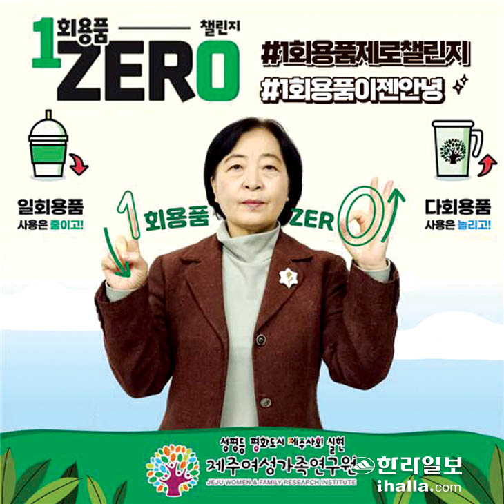 ¹®¼ø´ö Á¦ÁÖ¿©¼º°¡Á·¿¬±¸¿øÀåÀº 27ÀÏ 'ÀÏȸ¿ëǰ Á¦·Î 縰Áö(ÀÏȸ¿ëǰ ¾ø¾Ö±â µµÀü)'¿¡ µ¿ÂüÇß´Ù.