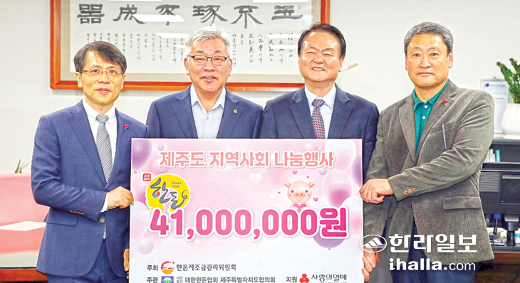 ´ëÇÑÇѵ·Çùȸ Á¦ÁÖÆ¯º°ÀÚÄ¡µµÇùÀÇȸ(ȸÀå ±èÀç¿ì)´Â Áö³ 24ÀÏ Á¦ÁÖÆ¯º°ÀÚÄ¡µµÃ» Á¤¹«ºÎÁö»ç½Ç¿¡¼ 4100¸¸¿ø »ó´çÀÇ Çѵ·À» Á¦ÁÖ»çȸº¹Áö°øµ¿¸ð±Ýȸ(ȸÀå °Áö¾ð)¿¡ ±âŹÇß´Ù.