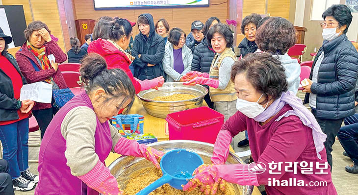 Á¦Áֽà ÇѰæ³óÇù(Á¶ÇÕÀå±è±ºÁø)Àº 28ÀÏ ÇѰæ³óÇù¿©¼º³ó¾÷Àμ¾ÅÍ¿¡¼ °áÈ¥ÀÌÁÖ¿©¼º ¹× ¿©¼º³ó¾÷ÀÎ 80¿© ¸íÀÌ Âü¼®ÇÑ °¡¿îµ¥ ÀüÅë¹ßÈ¿½Ä¹®È ¸·µÈÀå ¸¸µé±â üÇèÀ» ½Ç½ÃÇß´Ù.