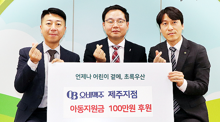 ¿Àºñ¸ÆÁÖ Á¦ÁÖÁöÁ¡(ÁöÁ¡Àå ¿ìÁ¤¿í)Àº Áö³ 29ÀÏ ÃÊ·Ï¿ì»ê ¾î¸°ÀÌÀç´Ü Á¦ÁÖÁö¿ªº»ºÎ(º»ºÎÀå º¯Á¤±Ù)¿¡ ¾Æµ¿Áö¿ø±Ý 100¸¸¿øÀ» Àü´ÞÇß´Ù.