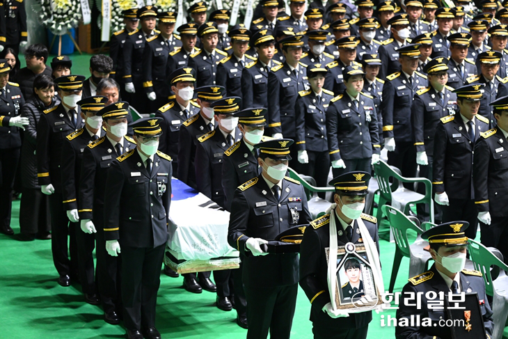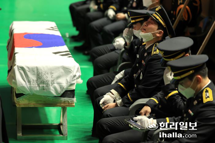 | 5ÀÏ ¿ÀÀü Á¦Áֽà ÇѶóüÀ°°ü¿¡¼ ¿¸° ÀÓ¼ºÃ¶ ¼Ò¹æÀå ¿µ°á½Ä¿¡¼ ¿î±¸¸¦ ¸ÃÀº µ¿·áµéÀÌ ÀÓ ¼Ò¹æÀåÀÇ À¯Çظ¦ ¾Õ¿¡ µÎ°í ½½ÆÛÇϰí ÀÖ´Ù. ¿¬ÇÕ´º½º |