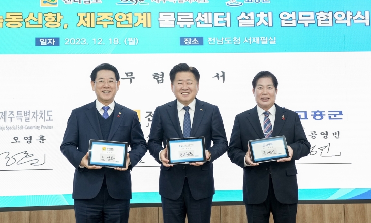 Á¦ÁÖµµ¿Í Àü¶ó³²µµ, °íÈﱺÀº 18ÀÏ ¹°·ù»ê¾÷ Ȱ¼ºÈ¸¦ À§ÇÑ ¾÷¹«Çù¾àÀ» ü°áÇß´Ù. »çÁø ¿ÞÂʺÎÅÍ ±è¿µ·Ï Àü³²Áö»ç, ¿À¿µÈÆ Á¦ÁÖÁö»ç, °ø¿µ¹Î °íÈﱺ¼ö. Á¦ÁÖµµ Á¦°ø