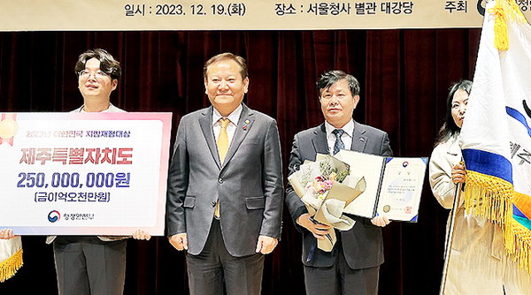 Á¦ÁÖÆ¯º°ÀÚÄ¡µµ´Â 19ÀÏ ÇàÁ¤¾ÈÀüºÎ ¼¿ïû»ç º°°ü¿¡¼ ¿¸° 'Á¦16ȸ ´ëÇѹα¹ Áö¹æÀçÁ¤´ë»ó'¿¡¼ ÇàÁ¤¾ÈÀüºÎÀå°ü»óÀ» ¼ö»óÇß´Ù.