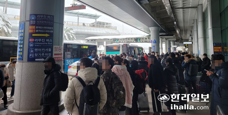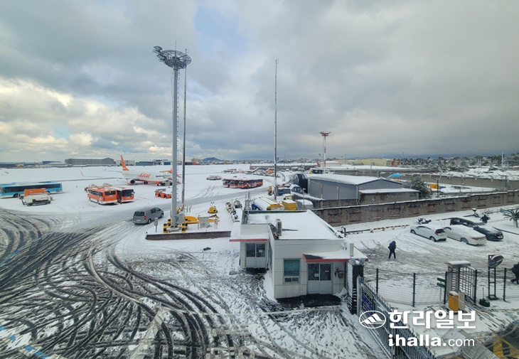 [ÇѶóÀϺ¸] Á¦ÁÖ¿¡ ÀÌÆ²Â° ¸¹Àº ´«ÀÌ ³»¸®¸é¼ Á¦ÁÖ±¹Á¦°øÇ× È°Áַΰ¡ Àӽà Æó¼âµÅ Ç×°ø±â ¿îÇ׿¡ Â÷ÁúÀÌ ºú¾îÁö°í ÀÖ´Ù. ÀÌ·Î ÀÎÇØ Á¦ÁÖ ¶Ç´Â ŸÁö¿ª¿¡ ¹ßÀÌ ¹ÀÎ Á¦ÁÖµµ¹Î°ú °ü±¤°´µéÀÌ ¿À°¡Áö ¸øÇØ ¾Ö¸¦ Å¿ì°í ÀÖ´Ù. Á¦ÁÖ°øÇ×Àº ´ëü Ç×°øÆíÀ» ±¸ÇÏ·Á´Â °áÇ×Æí ½Â°´µéÀÌ ¸ô¸®¸é¼ È¥ÀâÀÌ ºú¾îÁö°í ÀÖ´Ù.