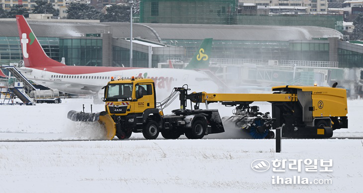 À̳¯ Çѱ¹°øÇ×°ø»ç Á¦ÁÖ°øÇ×Àº °è¼ÓµÇ´Â Æø¼³¿¡ ȰÁַο¡ ¸¹Àº ´«ÀÌ ½×ÀÌÀÚ Á¦¼³ ÀÛ¾÷À» À§ÇØ À̳¯ ¿ÀÀü 8½Ã20ºÐÀ» ±âÇØ Á¦ÁÖ°øÇ× È°ÁÖ·Î ¿î¿µÀ» Áß´ÜÇß´Ù. ´çÃÊ Á¦ÁÖ°øÇ×Àº ¿ÀÀü 9½Ã50ºÐ±îÁö Á¦¼³ ÀÛ¾÷À» ¸¶Ä¡°í ȰÁÖ·Î ¿î¿µÀ» Àç°³Çϱâ·Î ÇßÁö¸¸ ¿ö³« ´«ÀÌ ¸¹ÀÌ ³»¸° Å¿¿¡ Æó¼â ½Ã°£À» ¿ÀÀü 10½Ã50ºÐ, ¿ÀÈÄ 1½Ã, ¿ÀÈÄ 3½Ã±îÁö·Î ¼¼Â÷·Ê¿¡ °ÉÃÄ ¿¬ÀåÇØ Á¦¼³ÀÛ¾÷À» ¹úÀ̰í ÀÖ´Ù.
