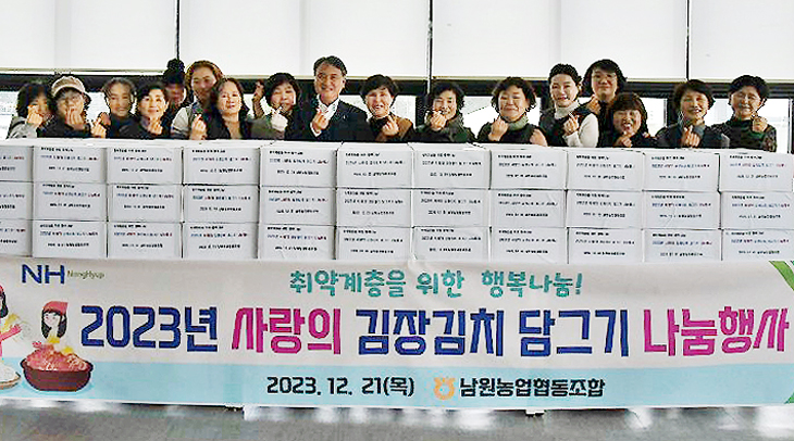 ¼±ÍÆ÷½Ã ³²¿ø³óÇù(Á¶ÇÕÀå °íÀÏÇÐ)Àº Áö³ 21ÀÏ ³²¿ø³óÇù º»Á¡ ±¸³»½Ä´ç¿¡¼ ¿©¼º Á¶Á÷Àå ¹× ÀÓÁ÷¿ø µî 30¿©¸íÀÌ Âü¿©ÇÑ °¡¿îµ¥ '2023 »ç¶ûÀÇ ±èÀå±èÄ¡ ´ã±×±â ³ª´®Çà»ç'¸¦ ÁøÇàÇß´Ù. À̳¯ ´ã±Ù ±èÄ¡´Â Áö¿ª ³» µ¶°Å³ëÀΰú ´Ù¹®È°¡Á¤, »çȸº¹Áö½Ã¼³ µî¿¡ Àü´ÞµÆ´Ù.